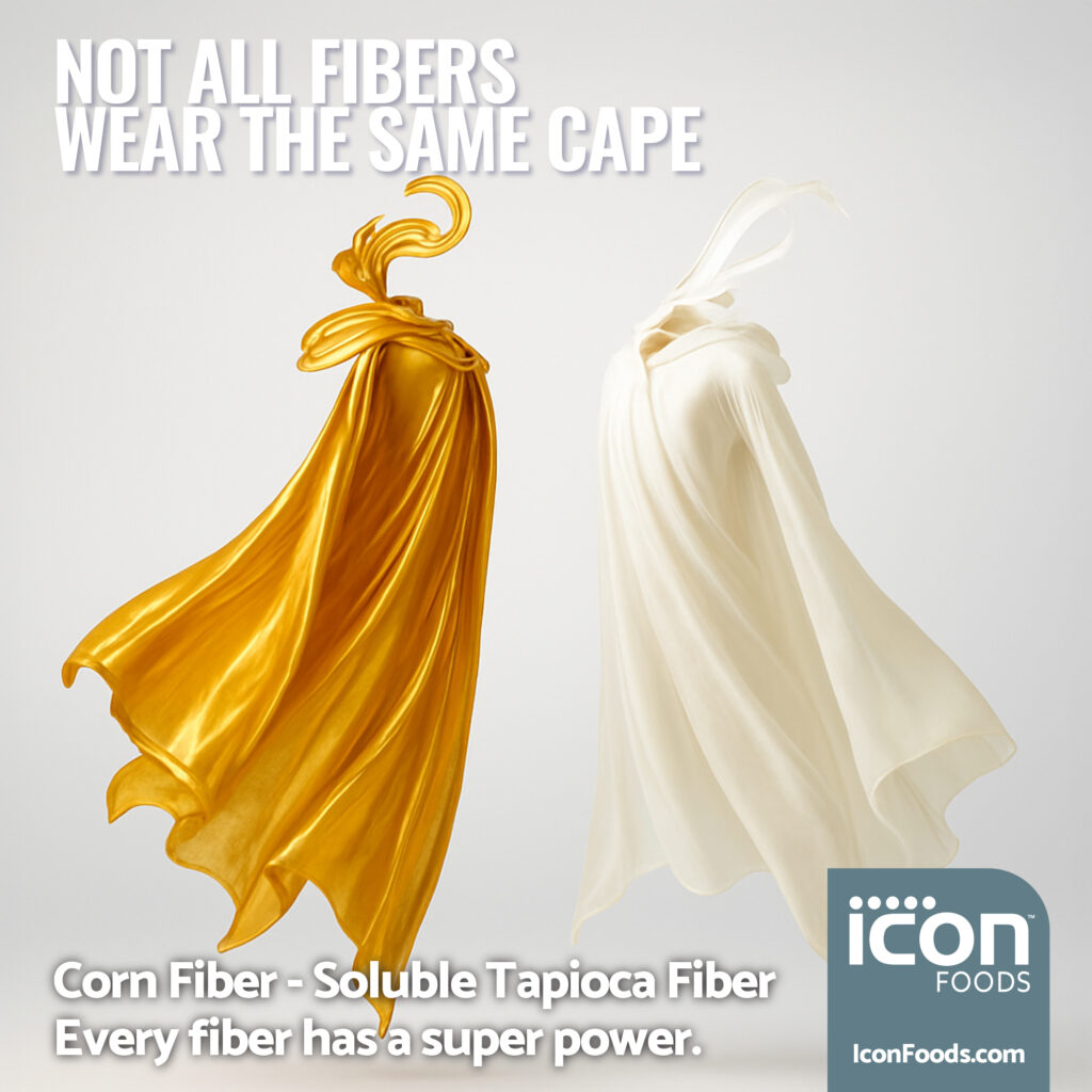 Soluble corn fiber and soluble tapioca fiber each bring functional and nutritional strengths to modern formulation, but tapioca continues to outpace corn on nearly every front. Sourced from non-GMO cassava and boasting fiber content above 90 percent, tapioca delivers a clean-label profile, a neutral sensory footprint, and superior performance across applications from dairy alternatives to baked goods to frozen desserts. Its prebiotic activity supports gut health, its slow glucose absorption aligns with diabetic-friendly development, and its creamy mouthfeel and binding strength unlock richer textures without added sugars or fat. As demand surges for non-Chinese, gluten-free, allergen-friendly, and recognizable ingredients, soluble tapioca fiber — particularly FibRefine™ — is emerging as the go-to choice for brands looking to innovate with confidence and avoid tariff volatility.