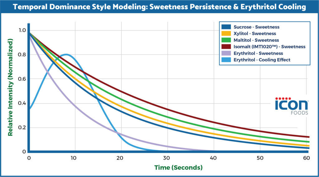 - Cooling lingers independently of sweetness in erythritol systems