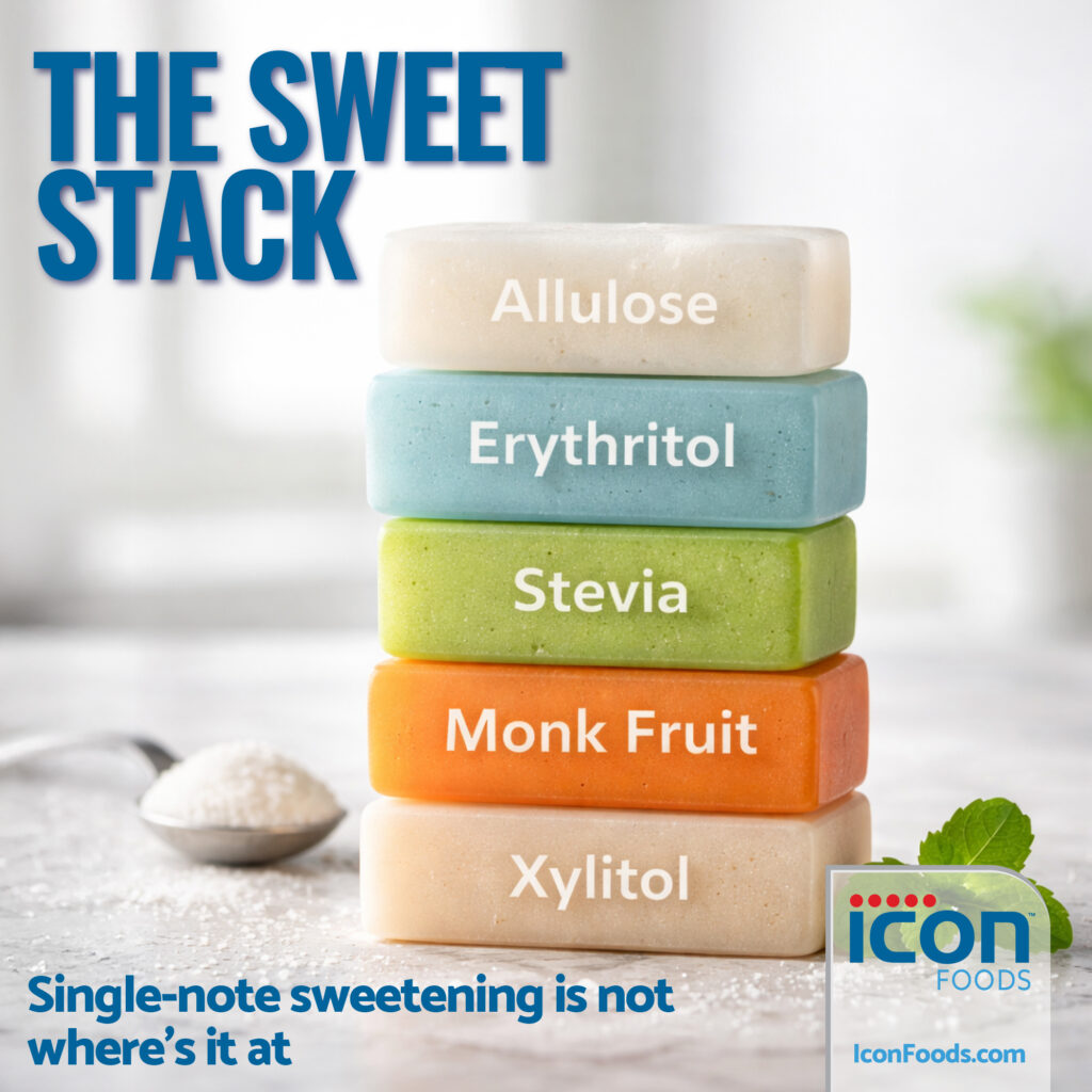 Stack for synergy. There’s no need to pick just one. A blend of allulose, erythritol, stevia, and monk fruit — customized by format — will give you more control over sweetness curve, mouthfeel, and off-note masking than a single-note sweetener ever will.