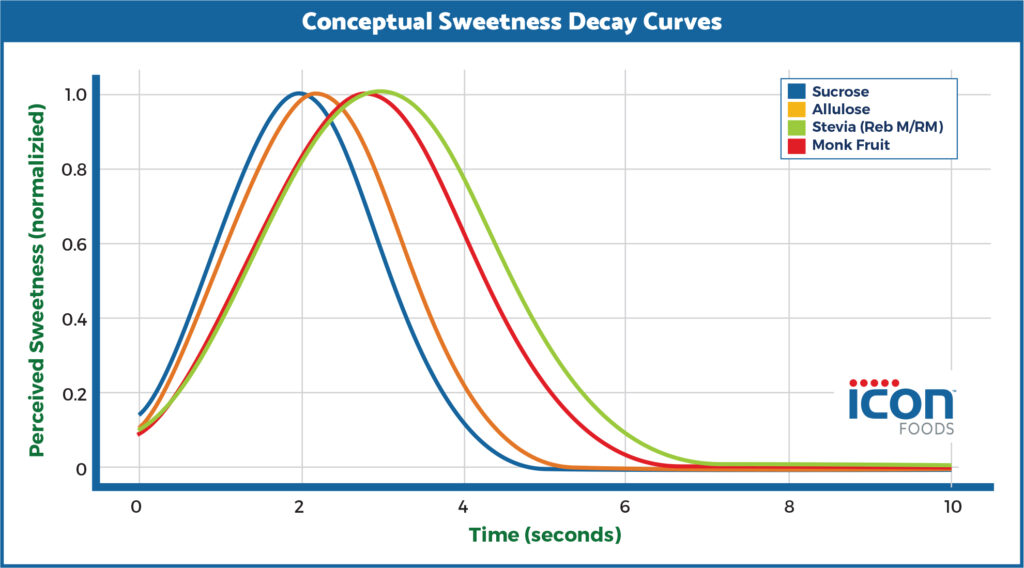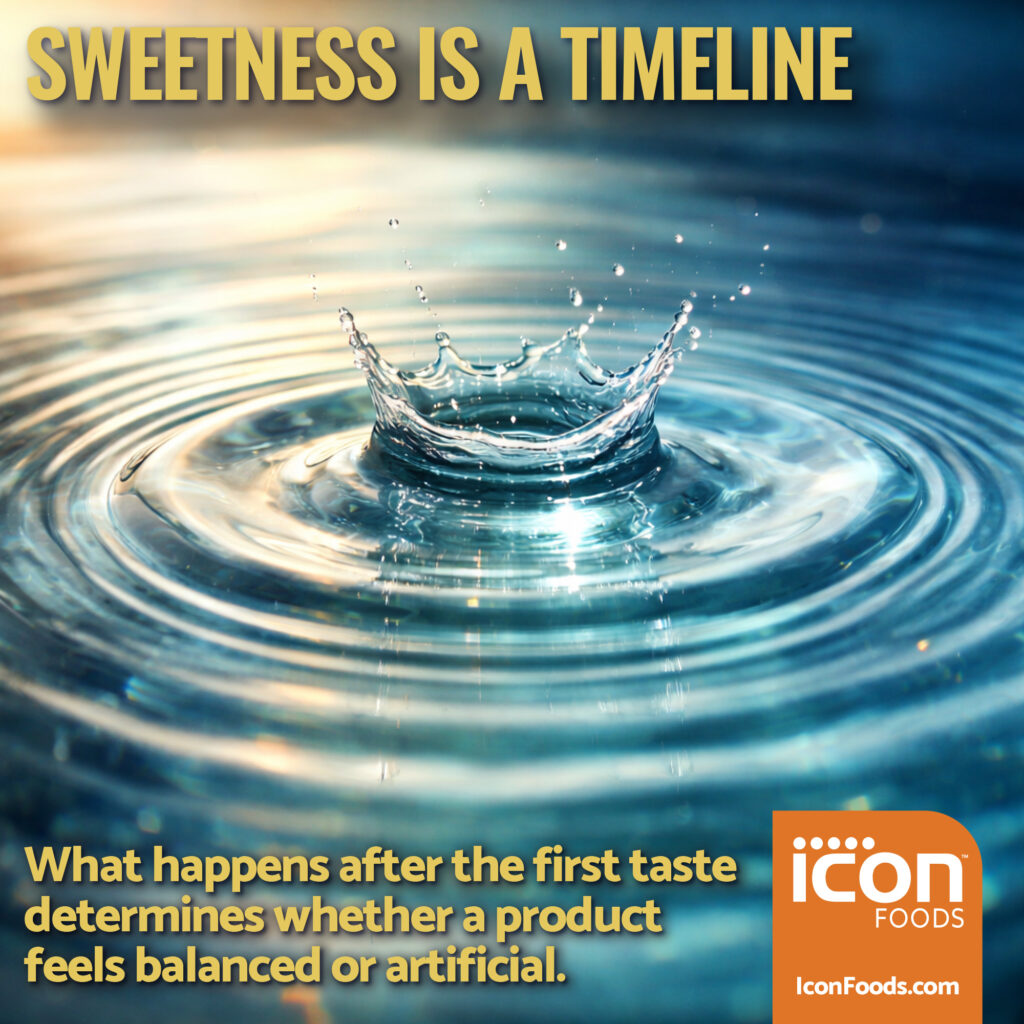 Sweetness isn’t just about how strong it is. It’s about how it behaves over time. In this white paper, Icon Foods’ Chief Innovation Officer Thom King explores sweetness decay rate, the often overlooked factor that determines whether a reduced-sugar product tastes clean and balanced or artificial and lingering. While formulators often focus on sweetness intensity, consumers actually experience sweetness as a timeline: how fast it appears, how it peaks, and how smoothly it fades. Many high-intensity sweeteners fail not because they are bitter, but because their sweetness lingers long after flavor has disappeared, creating an unbalanced finish. This guide explains why decay rate matters, how different sweeteners behave across the palate, and practical strategies for engineering sugar-like sweetness curves using layered sweetener systems, solids, and modulators. The takeaway is simple but powerful: successful sugar reduction isn’t just about replacing sugar. It’s about designing the timing of sweetness so it enters and exits the palate at exactly the right moment.